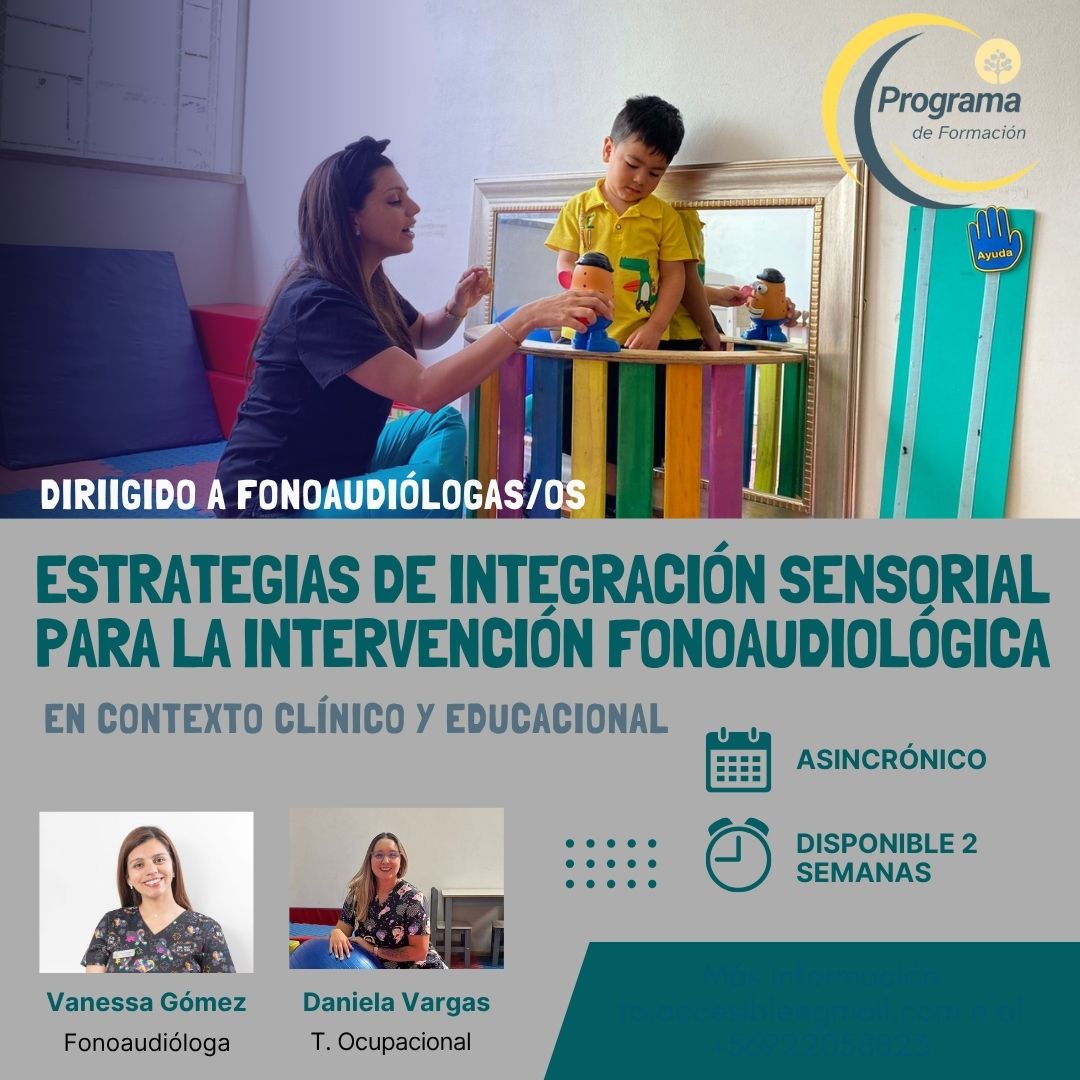 Nuestro programa de formación llamado “Estrategias de integración sensorial para la intervención fonoaudiológica en el contexto clínico y educacional” tiene como objetivo principal dar a conocer las bases conceptuales de la integración sensorial y cómo puede beneficiar en el proceso de intervención desde el área fonoaudiológica. Se dará importante a conocer el perfil sensorial de niños/as y adolescentes, lo que favorece una adecuación de las intervenciones convencionales, con el fin de favorecer el aprendizaje y por lo tanto cumplir con los objetivos fonoaudiológicos.